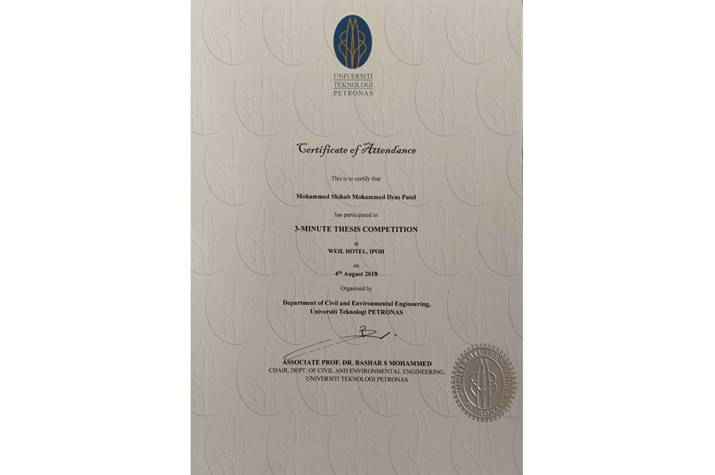 3. 3-Minute Thesis Competition, 4 Aug 2018, Weil Hotel, Ipoh, Malaysia.
