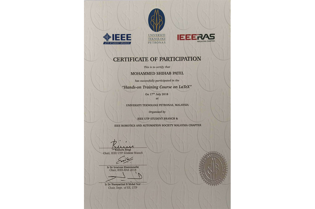 5. Hands on Training Course on LATEX, 17 Jul 2018, Universiti Teknologi PETRONAS, Malaysia.