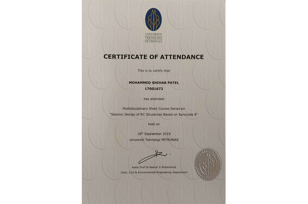 1. Multidisciplinary Short Course Series, Seismic Design of RC Structures Based on Eurocode 8, 18 Sept 2019, Universiti Teknologi PETRONAS, Malaysia.
