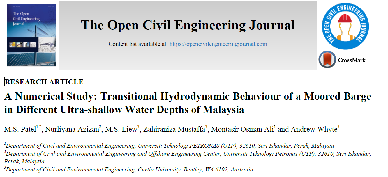 Patel, M.S., Khalifa, A.A., Liew, M.S., Mustaffa, Z. and Whyte, A., 2020. Downtime cost analysis of offloading operations due to influence of partially standing waves in Malaysian waters and development of graphical user interface. Annals of Operations Research, pp.1-27. [ISI Indexed, IF = 2.583]